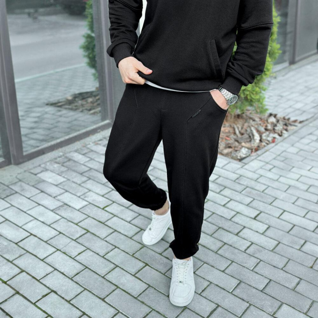 Доповнюють комплект і штани, які є зручними та практичними. Пояс на резинці з додатковим шнурком дозволяє легко регулювати посадку відповідно до Вашого комфорту. Дві бокові кишені забезпечують достатньо місця для зберігання різних речей, зробивши їх ідеальними для повсякденного використання. Манжети низу на резинці додають додаткової структури та забезпечують ідеальну посадку, не обмежуючи Ваші рухи. Також спереду розміщена фірмова силіконова бірка Pobedov.