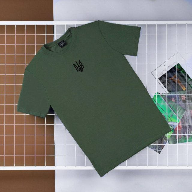 Футболка Pobedov Peremoga - наклейка Герб 4см чорна Хакі