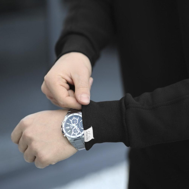 - фірмова жаккардова бірка Pobedov на манжеті лівого рукава