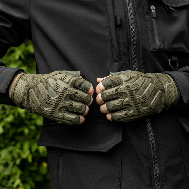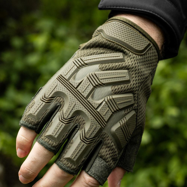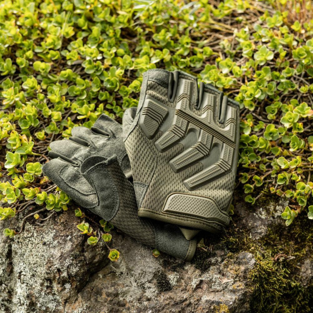 Легкі, зручні та зносостійкі тактичні рукавиці. Матеріали: штучна шкіра, спереду вставки з дихаючого матеріалу. TPR гума захищає найбільш уразливі місця. На зап'ясті регулюються за допомогою липучки. Є петля для кріплення за допомогою карабіну. Спеціальні ущільнювальні вставки на долонях підвищують зносостійкість в місцях найбільшого механічного тертя. Розміри: M L XL.