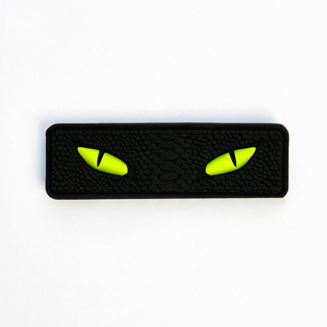 Матеріал: гума ПВХ. Розмір 8х2,5см. Ззаду шеврона є липучка. Тиснення - змія. Шеврон акумулює сонячне світло, що дає можливість очам світитись вночі