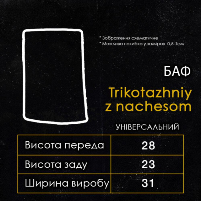 Матеріал: якісний трикотаж з начосом. Хомут дуже теплий та приємний до тіла. Затягується резинкою, для кращого захисту від вітру.