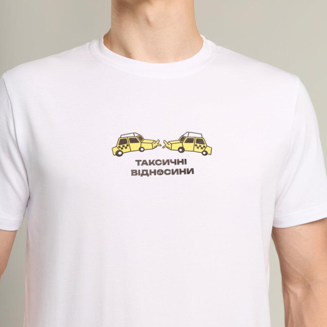 Футболка Pobedov Peremoga - наклейка ТАКСИЧНІ ВІДНОСИНИ Білий